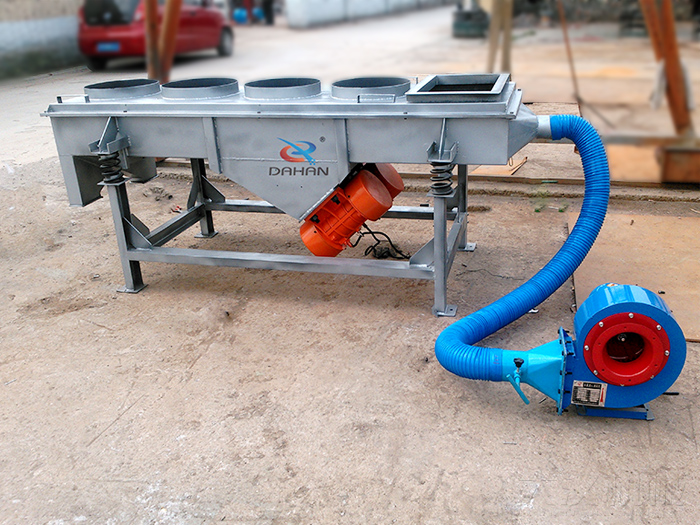 風冷式直線振動篩是大漢振動機械在原有的DZSF直線振動篩基礎上增加了風機降溫冷卻系統,同時降低物料的溫度,增加篩選產量。較之水冷式直線振動篩,他更適合怕水怕潮物料的篩分。風機冷卻系統安裝在機器進料口的底部或者箱體側端,在進料口加裝篩網及小型排料口使大顆粒結塊物料從小型排料口中排出,該裝置可有效攔截大顆粒并緩沖物料對篩網的沖擊,延長篩網使用壽命(該裝置針對部分物料,不需要可去除)。