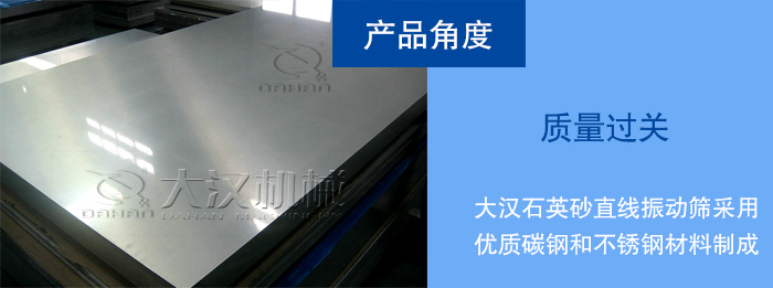 大漢石英砂直線振動篩采用優(yōu)質(zhì)碳鋼和不銹鋼材料制成,所有產(chǎn)品都是通過ISO國際質(zhì)量體系認證和歐盟CE認證,產(chǎn)品質(zhì)量過關(guān),設(shè)備使用壽命更長。