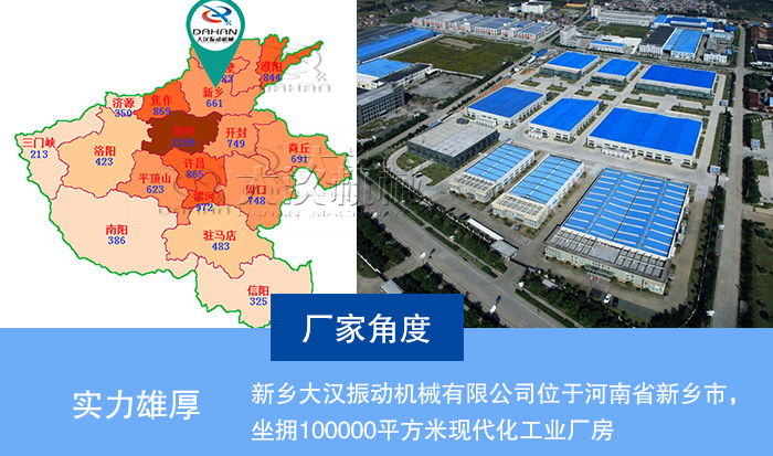 新鄉(xiāng)大漢振動機械有限公司位于河南省新鄉(xiāng)市,坐擁100000平方米現(xiàn)代化工業(yè)廠房,各種焊接設(shè)備能夠達到300余臺,而且,公司技術(shù)人員有上百名,廠家實力頗為雄厚。
