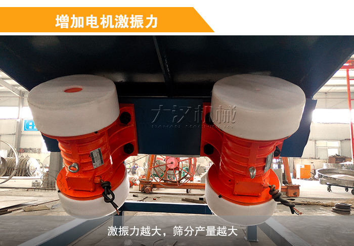電機激振力的強弱直接影響到篩分的效果,激振力越大,篩分產量越大,需要注意的直線振動篩是雙電機,使用的時間要注意兩邊的電機激振力要調節相等。