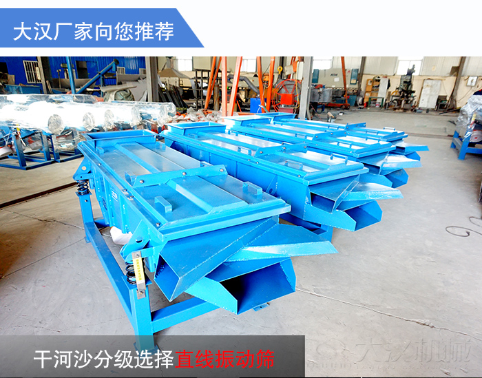 干河沙雜質(zhì)含量多,般需要使用振動篩對其進(jìn)行分級除雜,那么干河沙分級選擇哪種振動篩合適呢?大漢廠家在這里為您推薦直線振動篩。