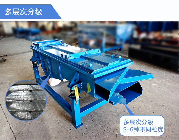 干河沙常規(guī)目數(shù)范圍有:4-8目、8-16目、10-20目、20-40目、40-70目、50-100目,所以在振動篩選型時需要考慮到設(shè)備的分級效果,大漢直線振動篩篩面層數(shù)可以達(dá)到5層,可以同時分選出2-6種不同粒度的干河沙,而且篩分精度在400目以內(nèi),對于篩分規(guī)格多的用戶來說,直線振動篩不失為種好的選擇。