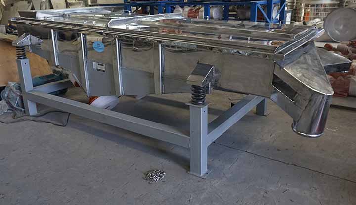 不銹鋼直線振動篩的篩面通常設計為5°-15° 的微小傾角,通過2-5 層不銹鋼篩網把濕的、易腐蝕的物料篩分為400目以內。