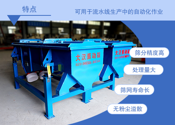 碳鋼直線振動篩結構簡單、耗能少、噪音低、篩網(wǎng)使用壽命長、密封性好、無粉塵溢散、維修方便、可用于流水線生產中的自動化作業(yè)。